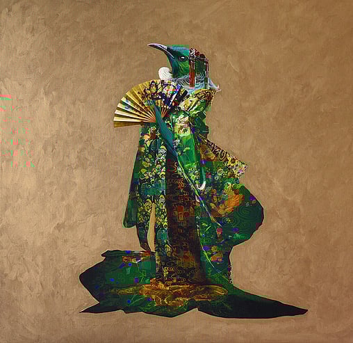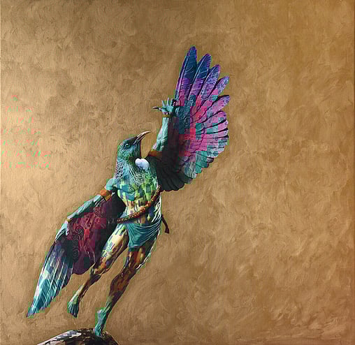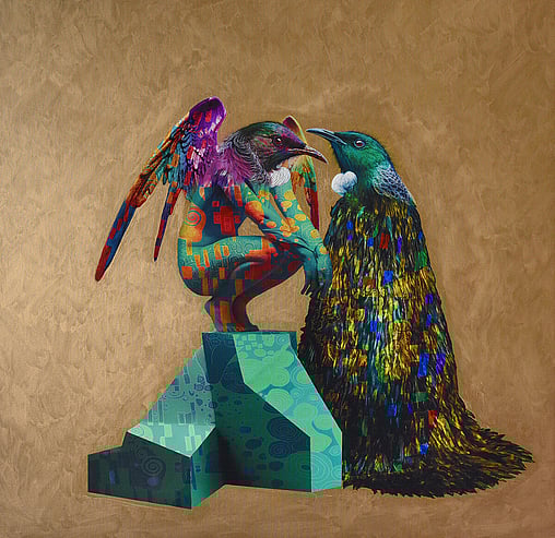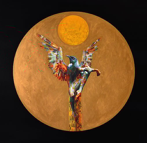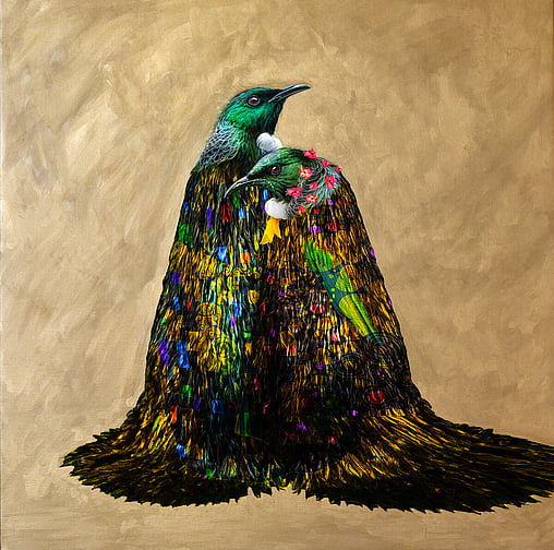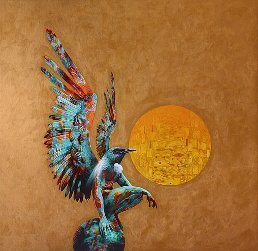 As the artist behind the Golden Era Exhibition, I am thrilled to present a series of works that blend elements of Mythological Greek and Japanese aesthetics with the rich and vibrant Art Nouveau style. At the heart of this collection are various anthropomorphic Tui's, a nod to the unique and iconic avian species native to Aotearoa.