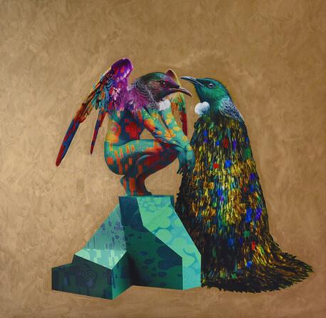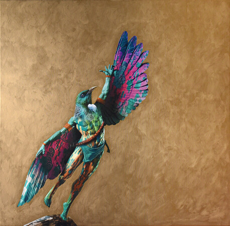 As the artist behind the Golden Era Exhibition, I am thrilled to present a series of works that blend elements of Mythological Greek and Japanese aesthetics with the rich and vibrant Art Nouveau style. At the heart of this collection are various anthropomorphic Tui's, a nod to the unique and iconic avian species native to Aotearoa.