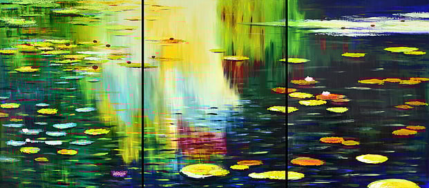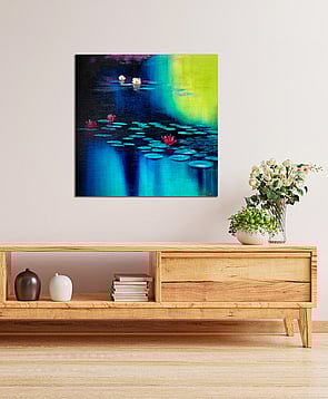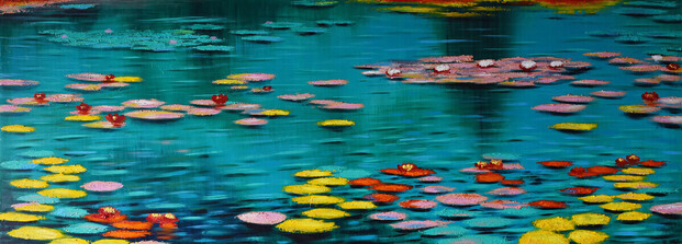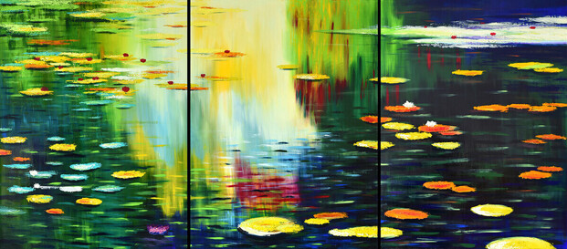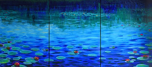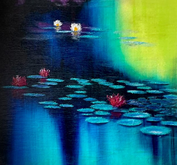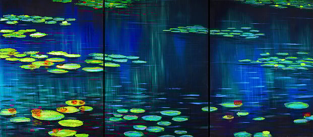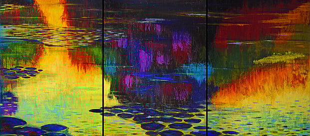 This series is acrylic and impasto on canvas. The medium is thick and luscious and the colours are bold and moody.